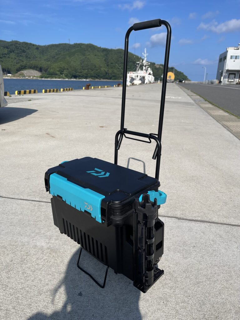 私が愛用しているダイワのタックルボックスの横幅が大体40㎝くらいで、余裕で乗るので、適応できるサイズはこのあたりかと思っています。