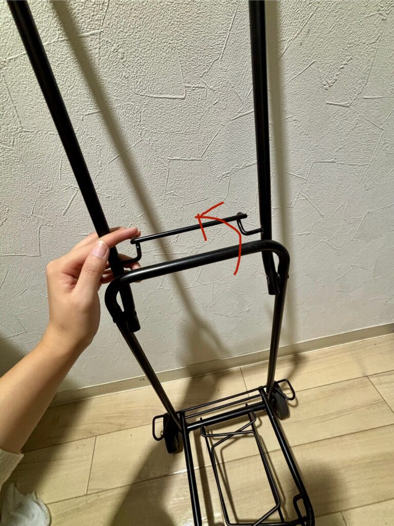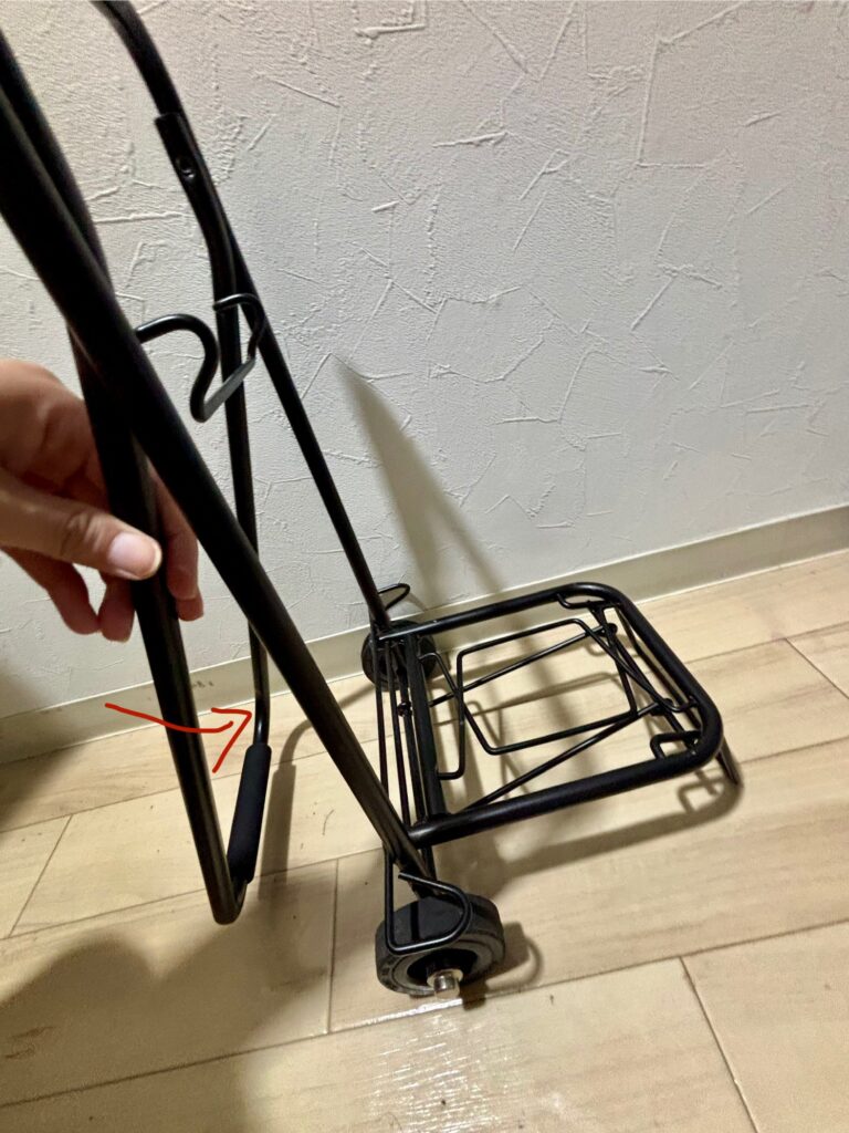 👆最後に留め具みたいなのをおろすと持ち手の部分が固定される感じです。