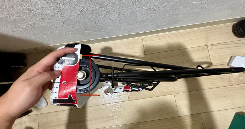 👆畳むときの説明をしようと思って矢印が上向きですが、下に押すとこの台座が下に降ります。