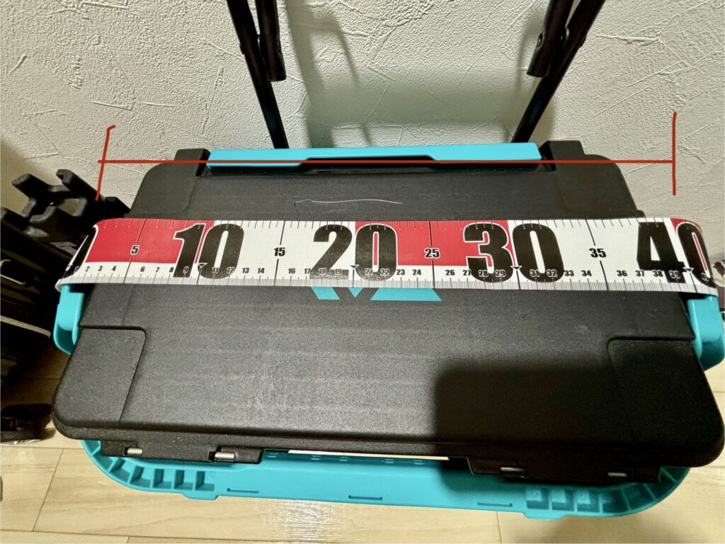 ダイソーキャリーの横幅が30㎝で、タックルボックスの横幅が40㎝なので、10㎝の誤差はありますが、