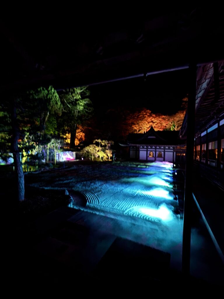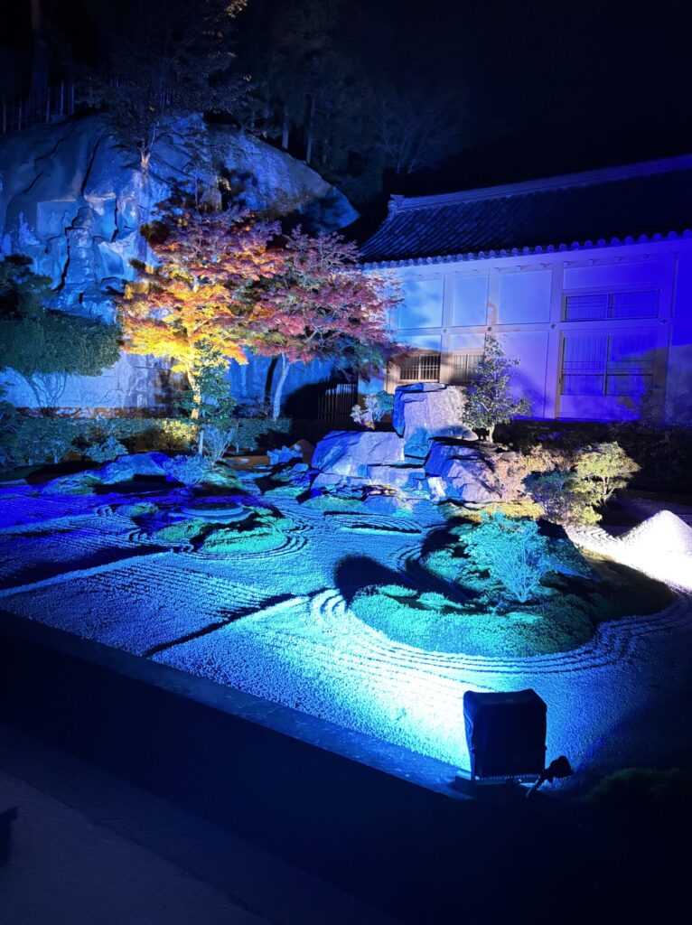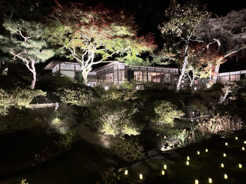 ライトに照らされた紅葉と、庭の見事な景観が幻想的でした。