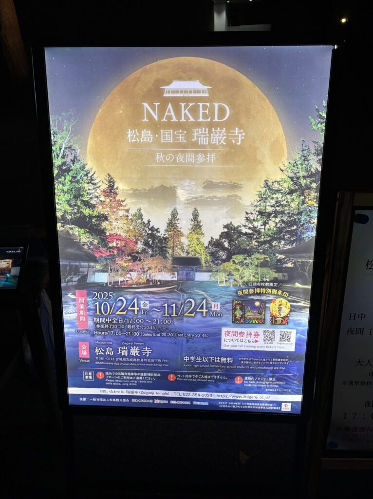 対して、瑞巌寺の客層は、年齢層が高めでしっとりライトアップを見たい人が多いのかな。という印象でした。