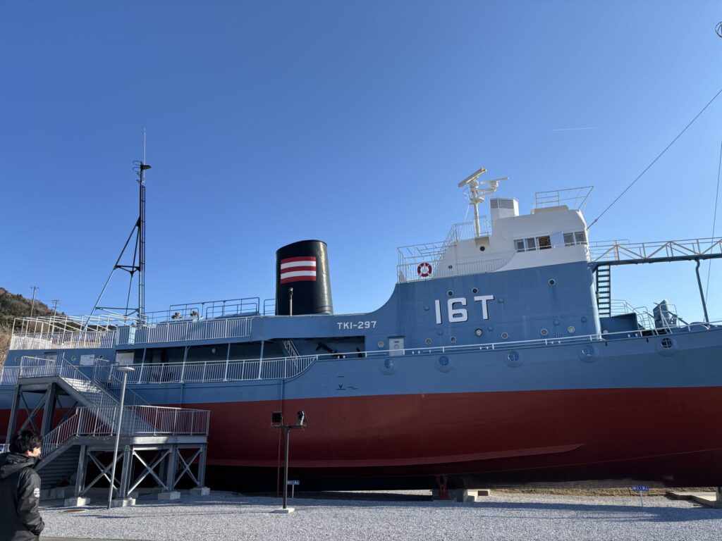 クジラを捕まえるための大きな船がそのまま広場に!🚢